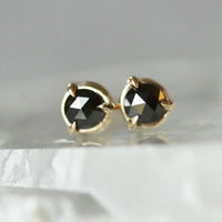 Little studs with a big impact. 3mm rose cut black diamonds set with pointy claws. Perfect for everyday.