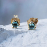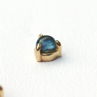 3mm blue sapphires just glow in the light, set with pointy claws. Perfect for everyday.