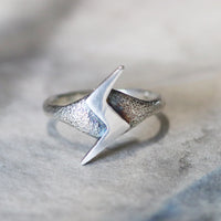 Ces bagues initiales inspirées de la foudre mesurent environ 18 mm de hauteur en argent sterling.