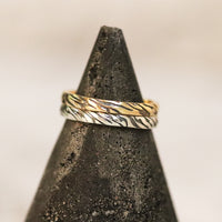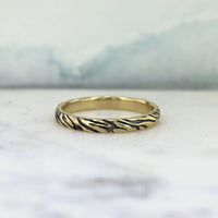 3mm wide and cast in 14K gold with black rhodium plating to accentuate the stripes.